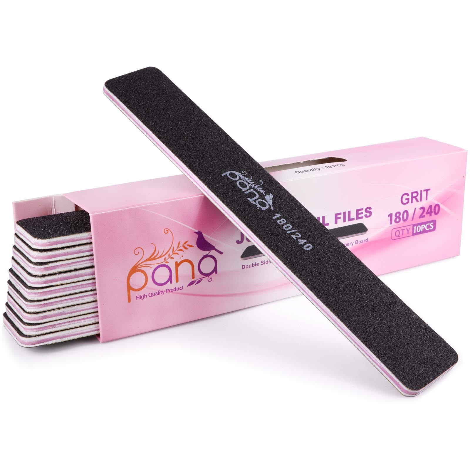 10PCS Jumbo Size PANA Professional Double Sided Nail Files - Black, 180/240 Grit - Emery Board Nail Buffering File Manicure Pedicure Nail Polisher Washable