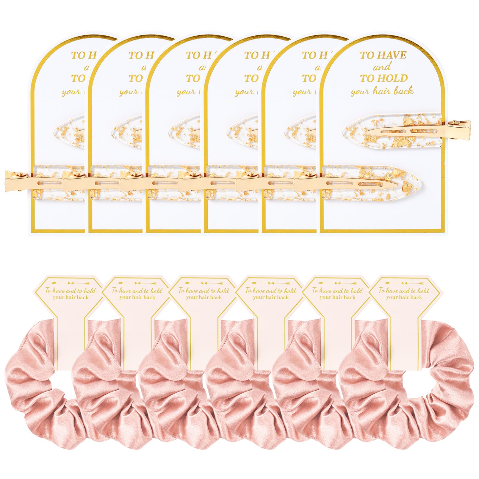 - 💖What You Will Get: this package comes with 6 set (Each set includes 2 crease free hair clips comes with the card ) gold glitter bridesmaid hair clips and 6pcs silk satin soft bridesmaid hair scrunchies It would be perfect addition to your bridesmaid's proposal boxes!