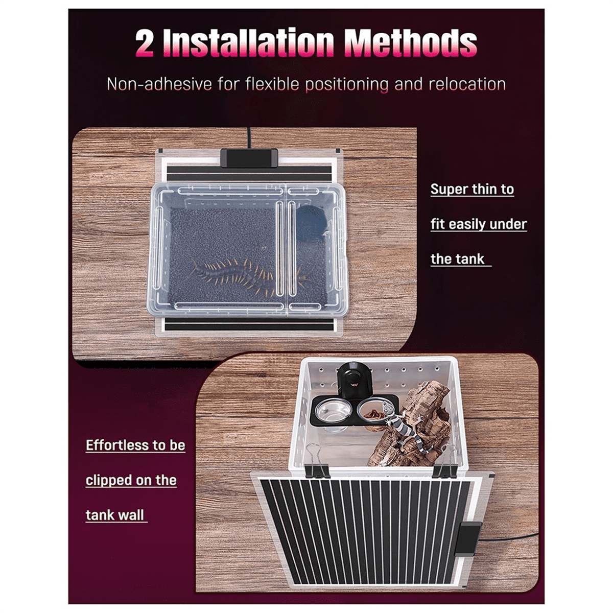 Ultra -thin design can be easily installed under the reptile box or .Non -stick design allows flexible positioning and re -positioning.With a 4.9 -foot -long power cord, this DC electric heating pad can be more convenient to connect to the power supply