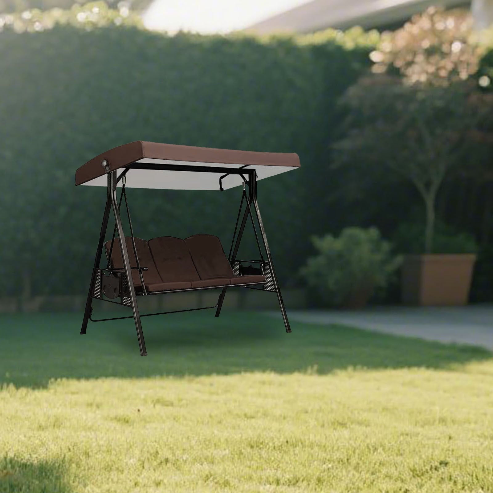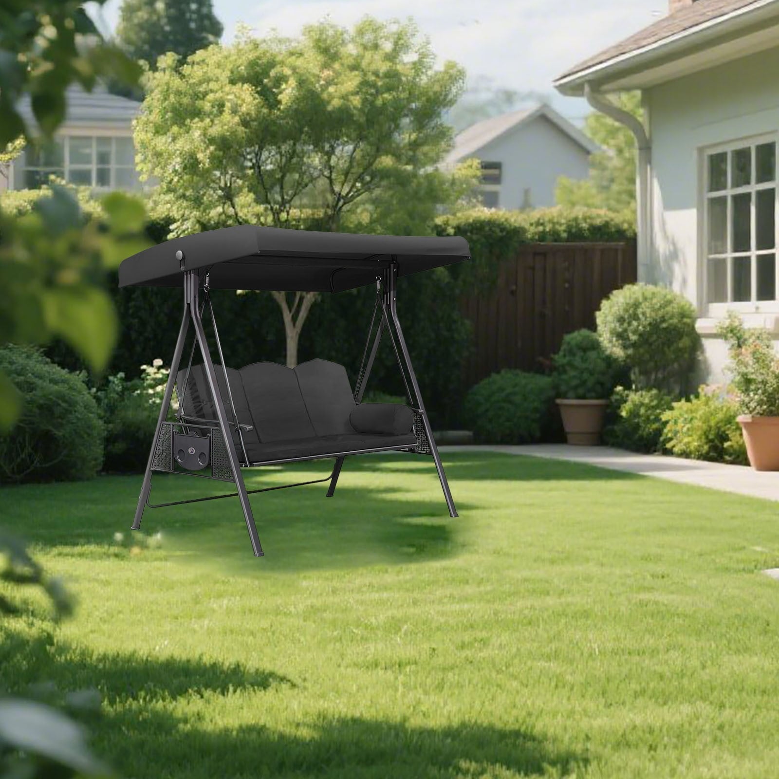 3-Seat Outdoor Patio Porch Swing with Adjustable Tilt Canopy, Cushions and Pillow Included
