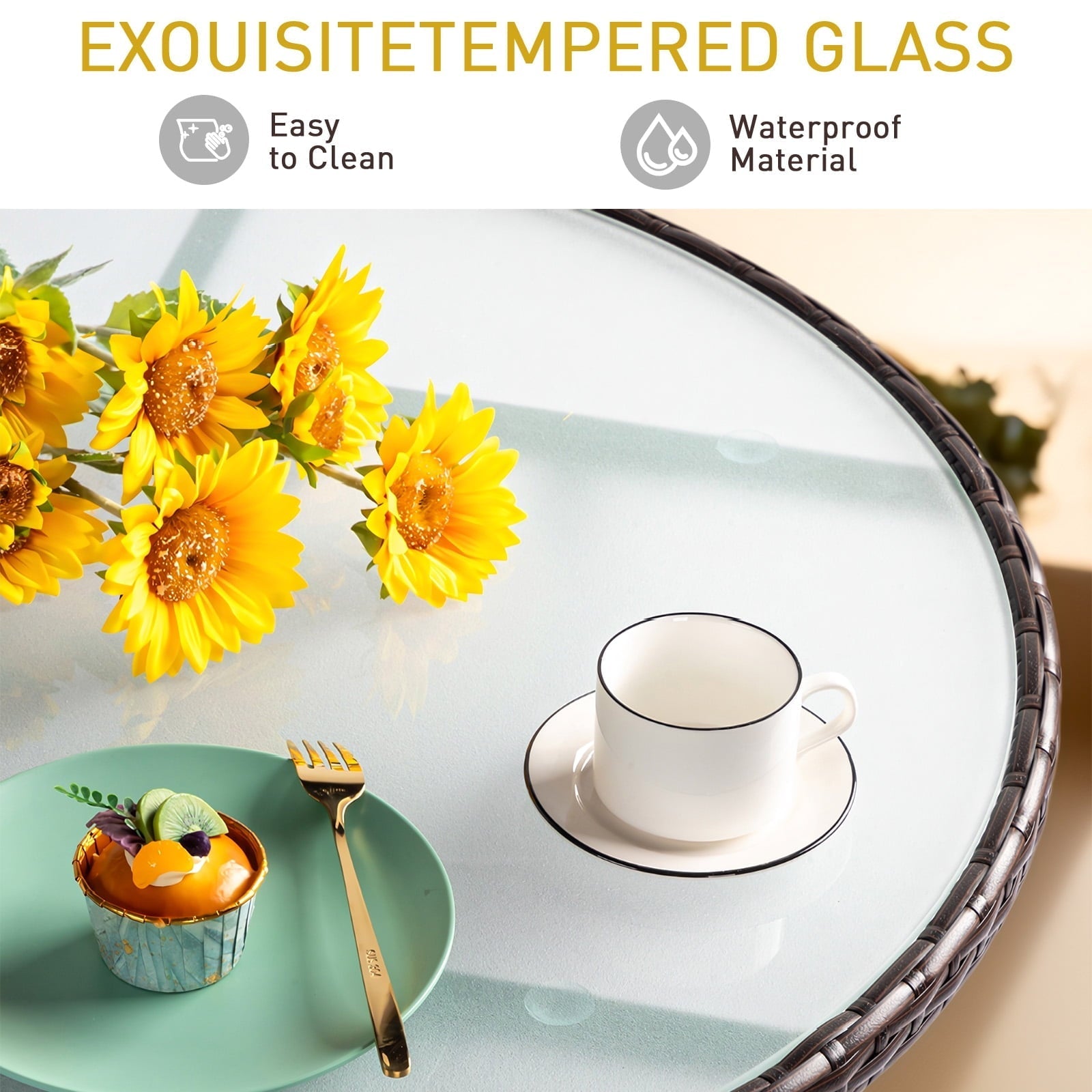 31.5" Round Wicker Patio Dining Table for 4, Outdoor Rattan Bistro Table with Glass Top – Brown