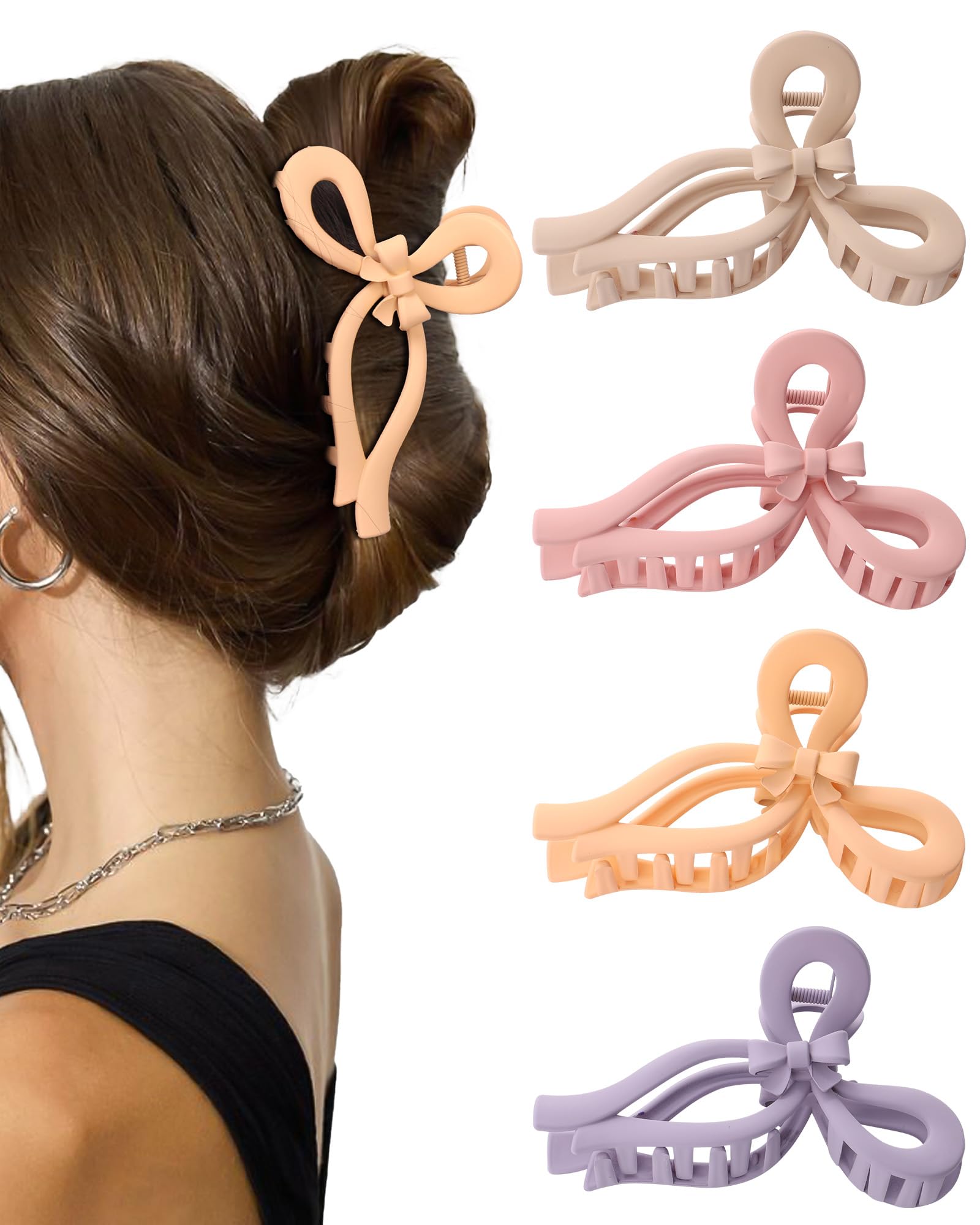 - 4 PCS CUTE BOW HAIR CLIPS FOR WOMEN: The bow hair claw clip design makes you look more elegant and beautiful. Various colors are available to meet your daily wear needs and make you look even more charming