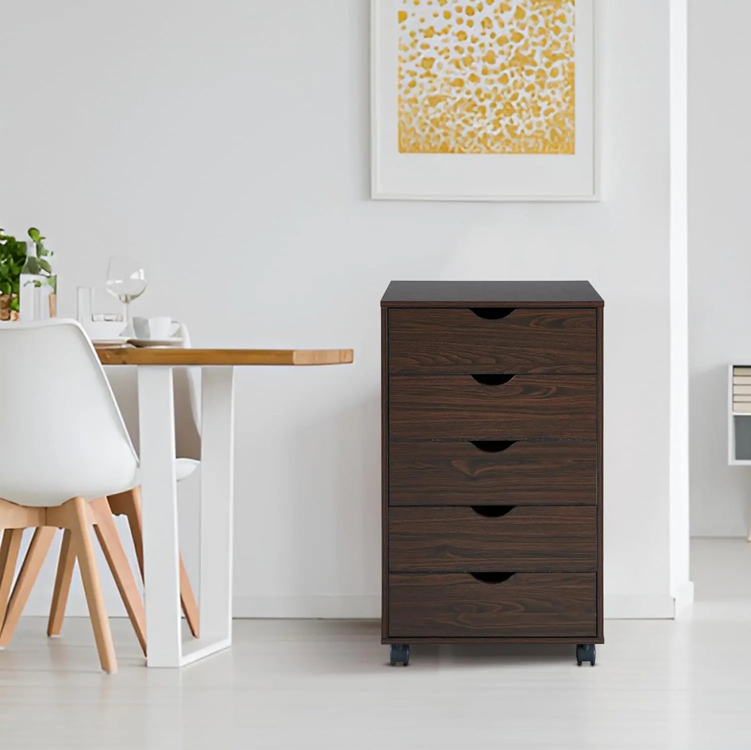 Designed for maximum storage and convenience, this 5-drawer tall dresser with wheels is a must-have for any bedroom. With its spacious drawers and easy mobility, you can easily organize and access your belongings. Its modern design and sturdy construction ensure both style and functionality.