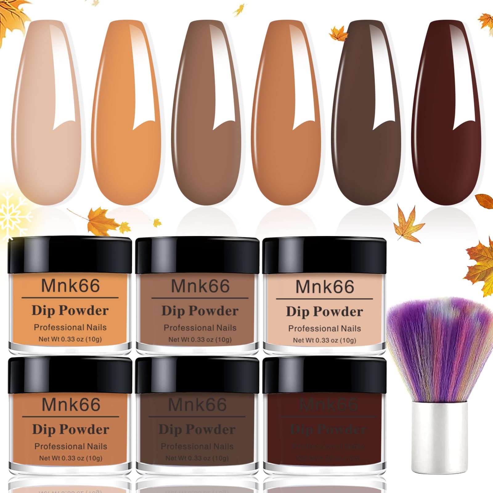 6 Colors Dip Powder Set, Nude Brown Dipping Powder Color Set, Glossy Nail Art Manicure DIY Salon Home Gift for Ladies (YYSDDPS-08-6PCS)