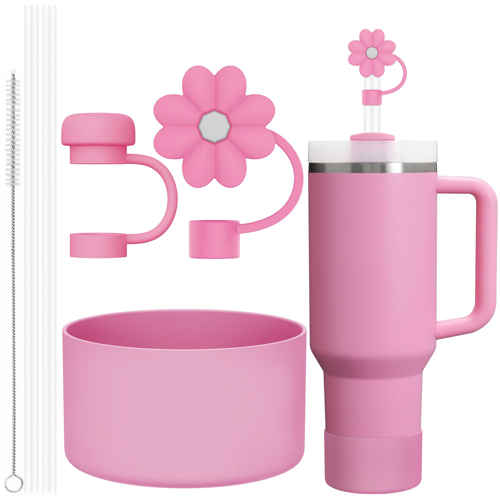 6 Pcs Accessories for Stanley Cup 20-40oz,2 Straw Covers,2 Replacement Straws,1 Straw Brush,1 Boot Included, SIlicone Straw Cover Caps Topper (Peony)