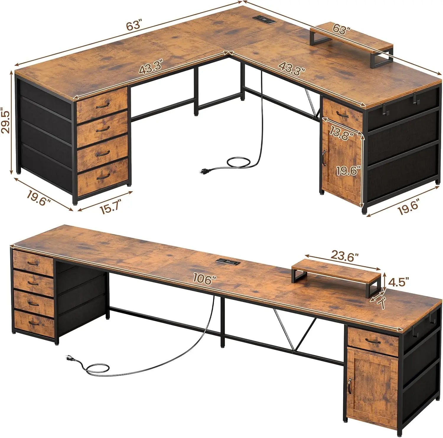 63 Inch L Shaped Office Desk