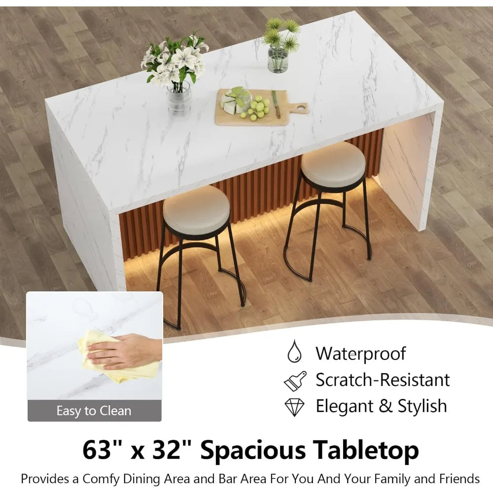Expertly crafted with a sleek and modern design, our 63 Inch Large Marble Dining Table is perfect for entertaining or everyday meals. Made with durable marble, it adds elegance to your dining room. Its large size comfortably accommodates family and guests, making meals even more enjoyable.