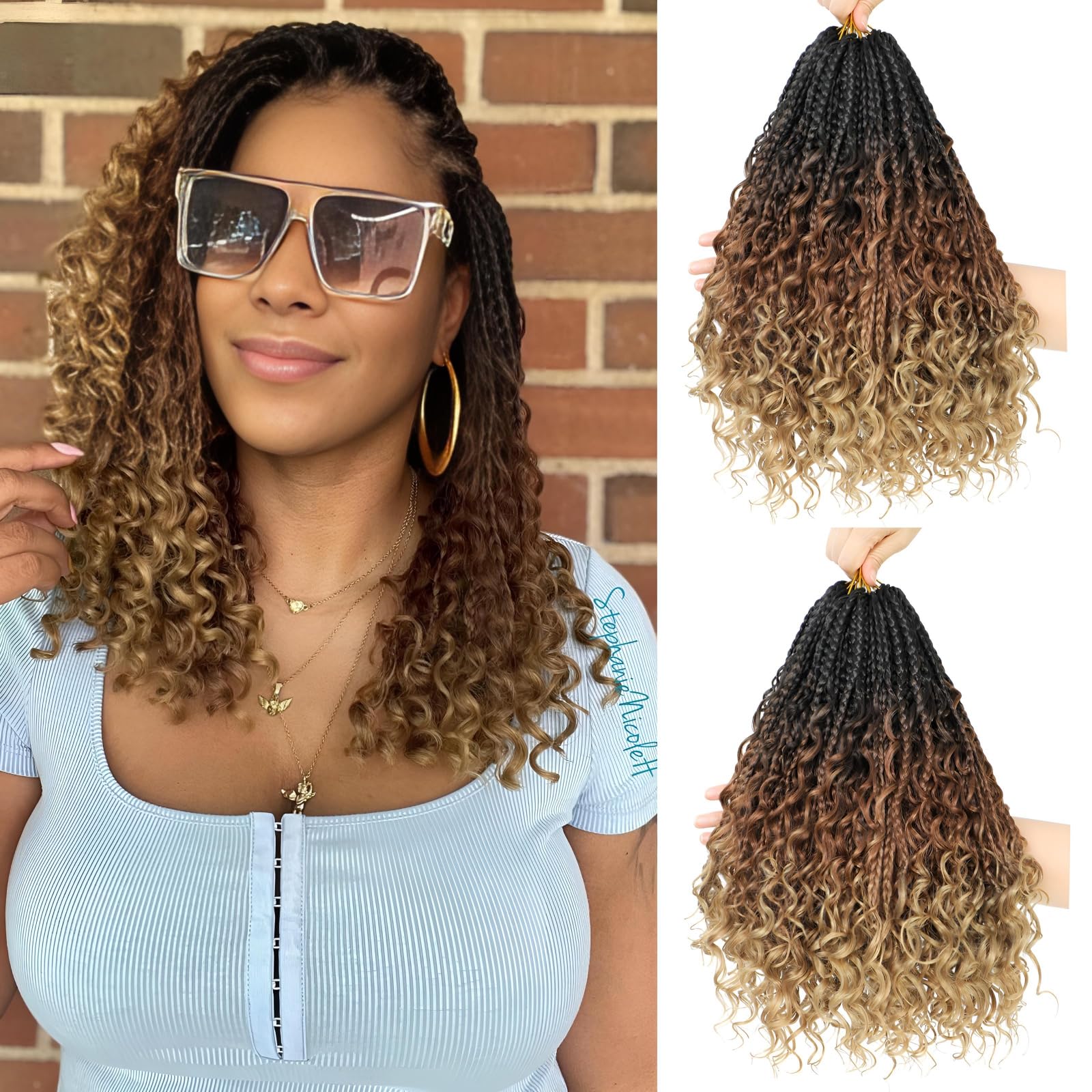 - 【Goddess box braids Crochet hair Package】--8 Packs 10 inch boho box braids crochet hair, 14 roots/pack crochet braids curly ends, 50g/Pack Crochet box Braids Hair.