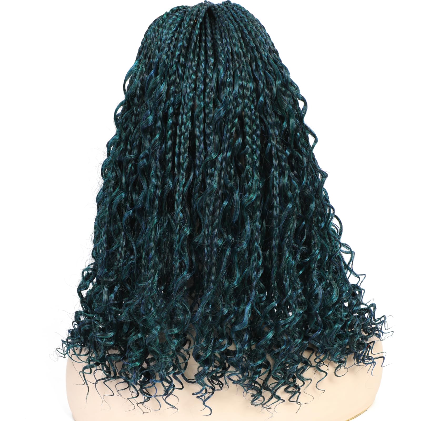 8 Packs Crochet Box Braids- 18 Inch Goddess Box Braids Crochet Hair Bohomian Crochet Braids Hair Synthetic Braiding Hair Extensions Crochet Hair for Black Women (18(8Packs), 1B/Blue/Green)