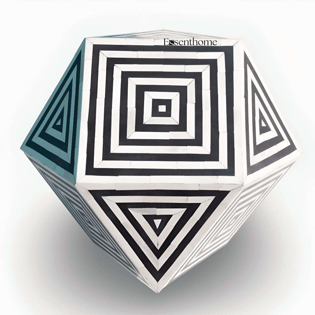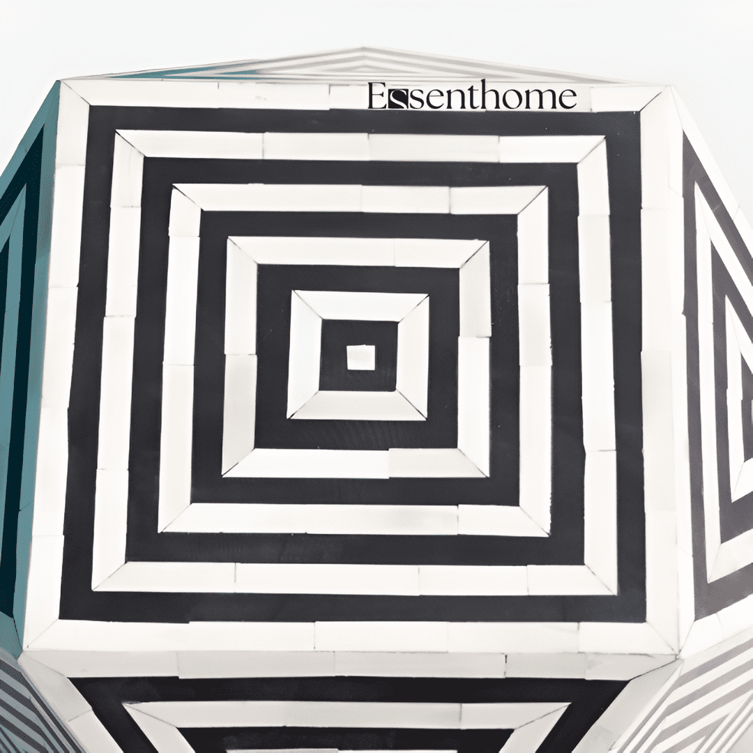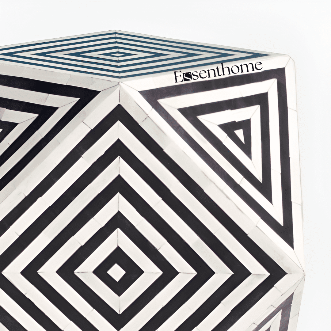 Elevate your interior with this eye-catching Bone and Resin Inlay End Table, designed in a modern abstract pattern that speaks of sophistication and handcrafted excellence. With its compact 12'x12'x18' profile, this artisan-crafted table adds functional charm to small spaces while becoming an instant focal point. Perfect for your bedside, sofa corner, or reading nook, it offers both style and utility in a refined, artistic form.Product Type: End Table / Accent TablePattern: AbstractInlay Material: Ethically sourced bone and resinFrame Material: Acacia woodPrimary Color: White (Bone) with contrasting Resin inlayFinish: Smooth, glossy protective resin coatingDimensions: 12' L x 12' W x 18' HWeight: Approx. 14–18 lbsAssembly: No assembly requiredCare Instructions: Dust with soft, dry cloth; avoid moisture and abrasive cleanersOrigin: Handcrafted in IndiaA Sculptural Statement in Compact FormBring refined artistry and smart functionality into your space with the Bone Inlay Resin End Table in an Abstract Pattern, a versatile design piece that reflects generations of skilled craftsmanship. Small in size but big in impact, this 12'x12'x18' table is the perfect fit for apartments, studios, or rooms that need a subtle yet sophisticated accent.The Art of Bone Inlay:Originating centuries ago in Rajasthan, India, bone inlay is an ancient art form known for its intricate, detailed appeal. Each piece of bone is hand-cut and arranged into abstract, geometric designs that create an interplay of texture, symmetry, and natural beauty. Our artisans hand-place each piece of bone, then fill the spaces with colored resin, forming the design layer by layer.Sourced from ethically obtained camel boneSet into resin using traditional handcraft methodsPolished to a glossy finish to highlight the detailAbstract EleganceThe abstract pattern on this table gives it a contemporary edge while still retaining the handcrafted soul of traditional Indian artistry. The visual flow of the inlay catches the eye and offers something fresh from every angle. Whether your style leans modern, boho, eclectic, or transitional, this end table complements a wide range of decors.Multi-Functional and VersatileWhether placed next to a sofa, beside a bed, or used as a stand-alone art piece, this end table adapts to your needs:Bedside Table: A sleek surface for a lamp, book, or glass of waterLiving Room Accent: Display candles, décor, or potted plantsOffice Corner: Add elegance to your reading or waiting nookEntryway Piece: A subtle surface for keys and essentialsSmall Size, Big Design Impact:At just 12'x12', this table fits into any corner or space where standard furniture may feel bulky or overwhelming. Despite its compact frame, the bold pattern ensures it won’t be overlooked. It’s a conversation starter and a style enhancer in one.Premium Build and Materials:Crafted from durable acacia wood, this table is built to last. The base structure ensures stability and durability, while the hand-inlaid bone and resin top creates a sturdy, wipeable surface perfect for daily use.Solid wooden base – prevents wobbling and saggingHand-applied resin topcoat – protects from scratches and spillsLightweight yet stable – easy to move or rearrangeNo Assembly, No Hassle:Your table arrives fully assembled and ready to place. No tools, no complicated instructions—just unbox and enjoy. This makes it an ideal gift for housewarmings, weddings, or for upgrading your own décor effortlessly.Handcrafted Heritage:Each end table is a one-of-a-kind piece. Slight variations in color, shape, or alignment of inlay pieces are part of the natural beauty of the handmade process. When you purchase this product, you’re supporting a centuries-old craft and the artisans who preserve it.Care Instructions;This inlay table is designed to last when properly cared for. Follow these simple steps to preserve its finish:Dust regularly with a soft, dry clothAvoid placing in direct sunlight or humid environmentsDo not use chemical or abrasive cleanersProtect surface from sharp or heavy objectsA Unique Gift or Decor UpgradeLooking for a memorable gift? This artisan-made end table makes a great choice for:HousewarmingWedding registryHoliday surpriseDesign-conscious loved onesOr use it to upgrade your own home décor with something that’s handmade, ethical, and luxurious.