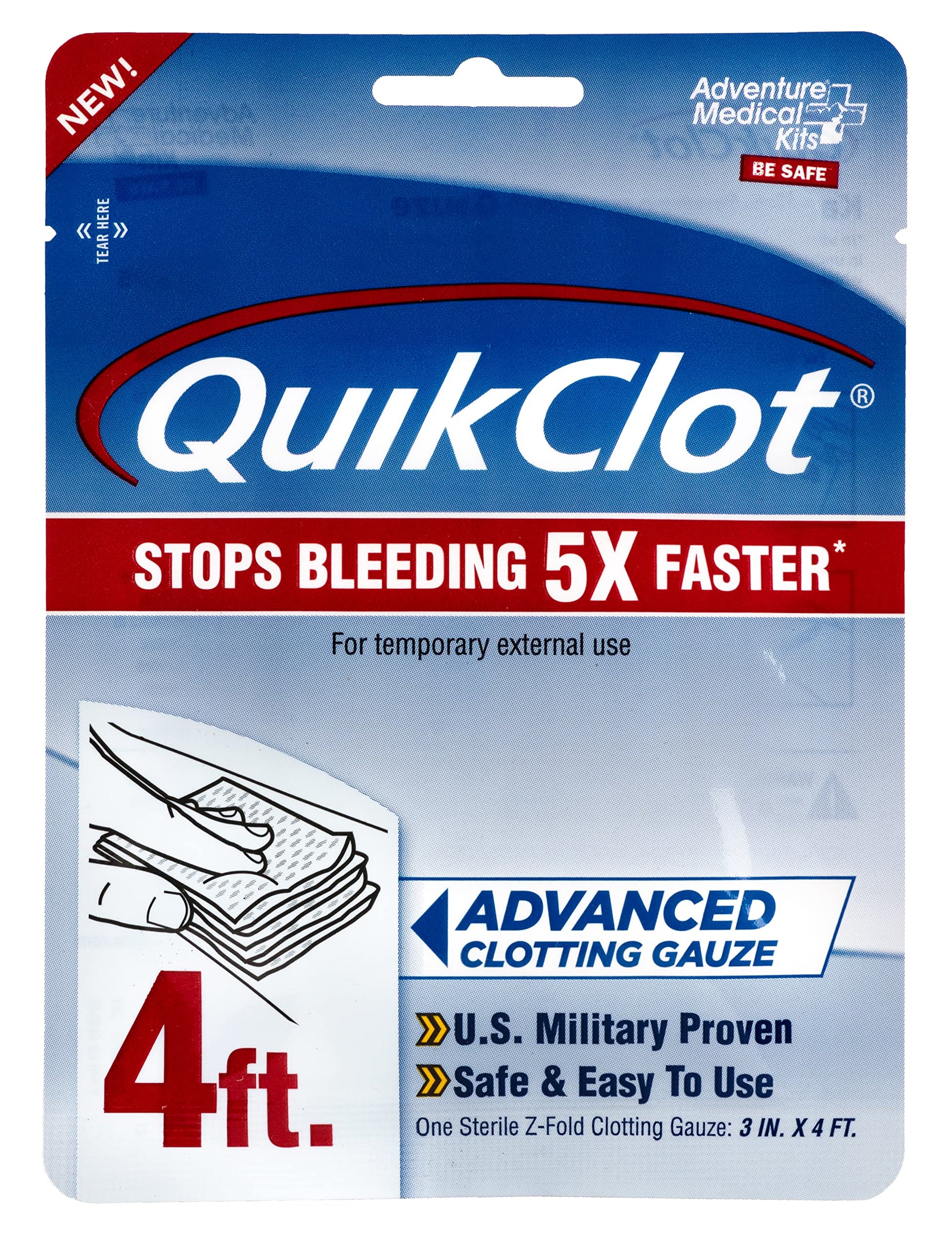 Adventure Medical Kits QuikClot Gauze - Gauze for Emergency Survival Kit, Doomsday Prepping Supplies & More - Stops Bleeding Fast with Kaolin - Flexible Hemostatic Medical Gauze - 3" x 48"