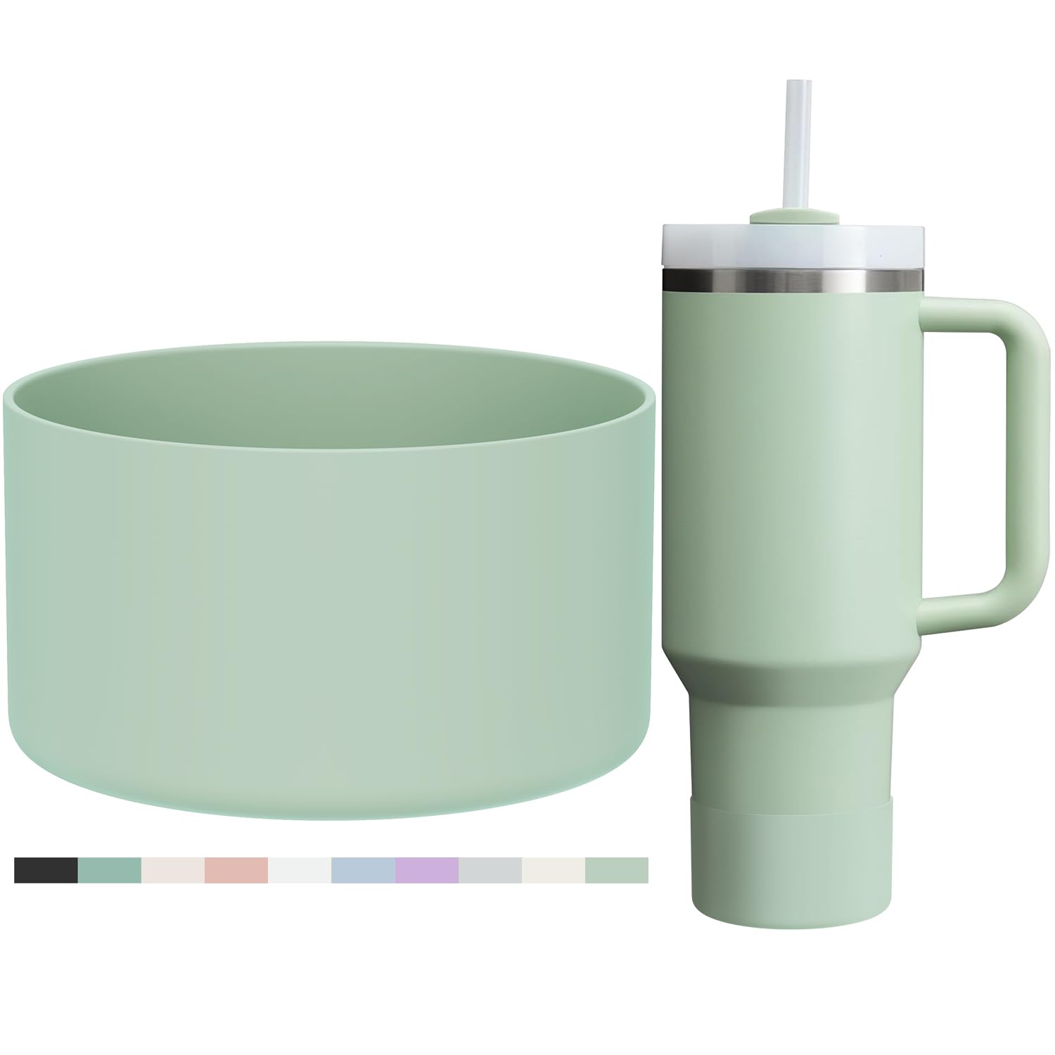 Affute Protective Silicone Boot for Stanley Quencher H2.0 40 30 20 oz & IceFlow Flip 30 20 oz, BPA Free Anti-Noise Anti-Scratch, Stanley Cup Protector Sleeve Cover Boot (Matcha Cream)
