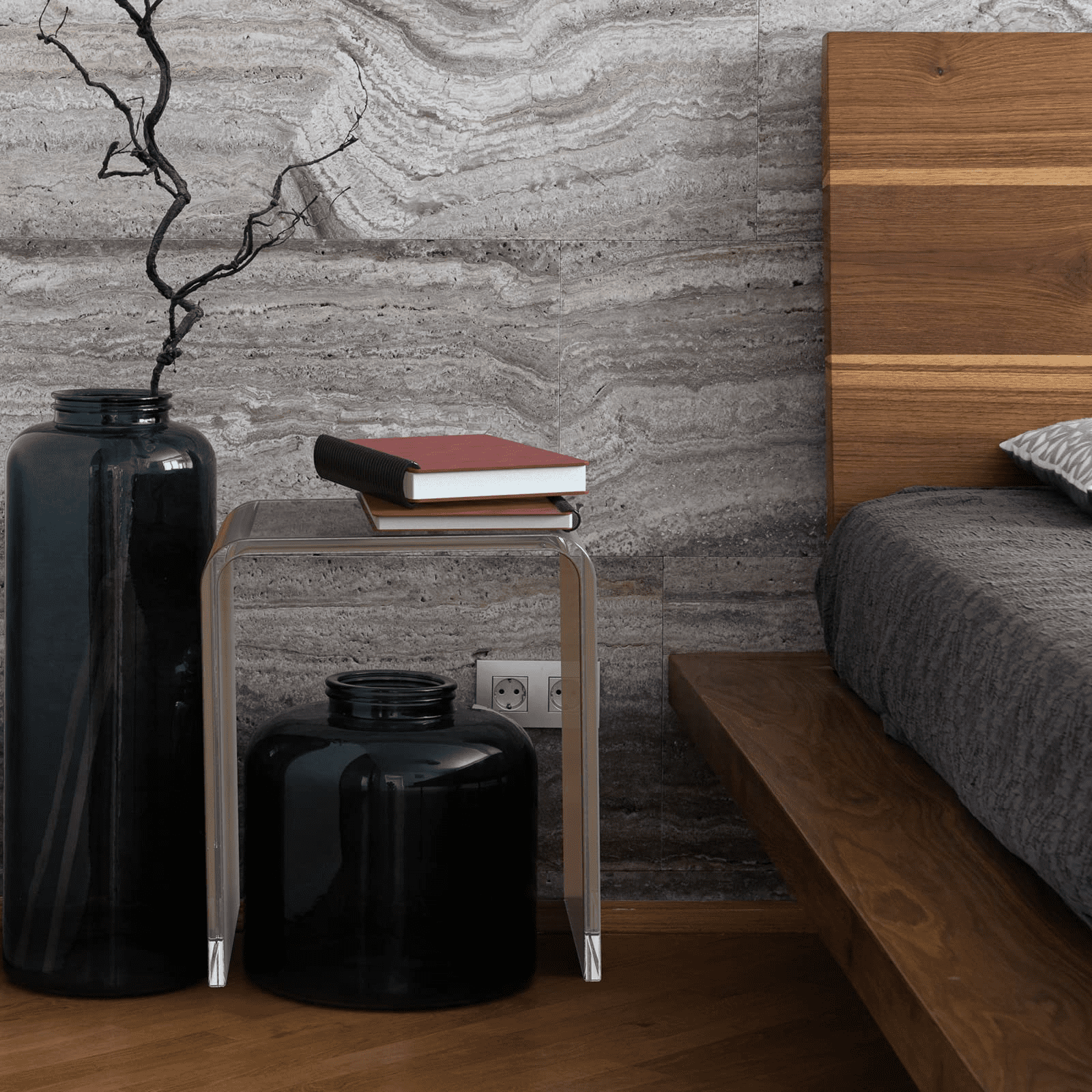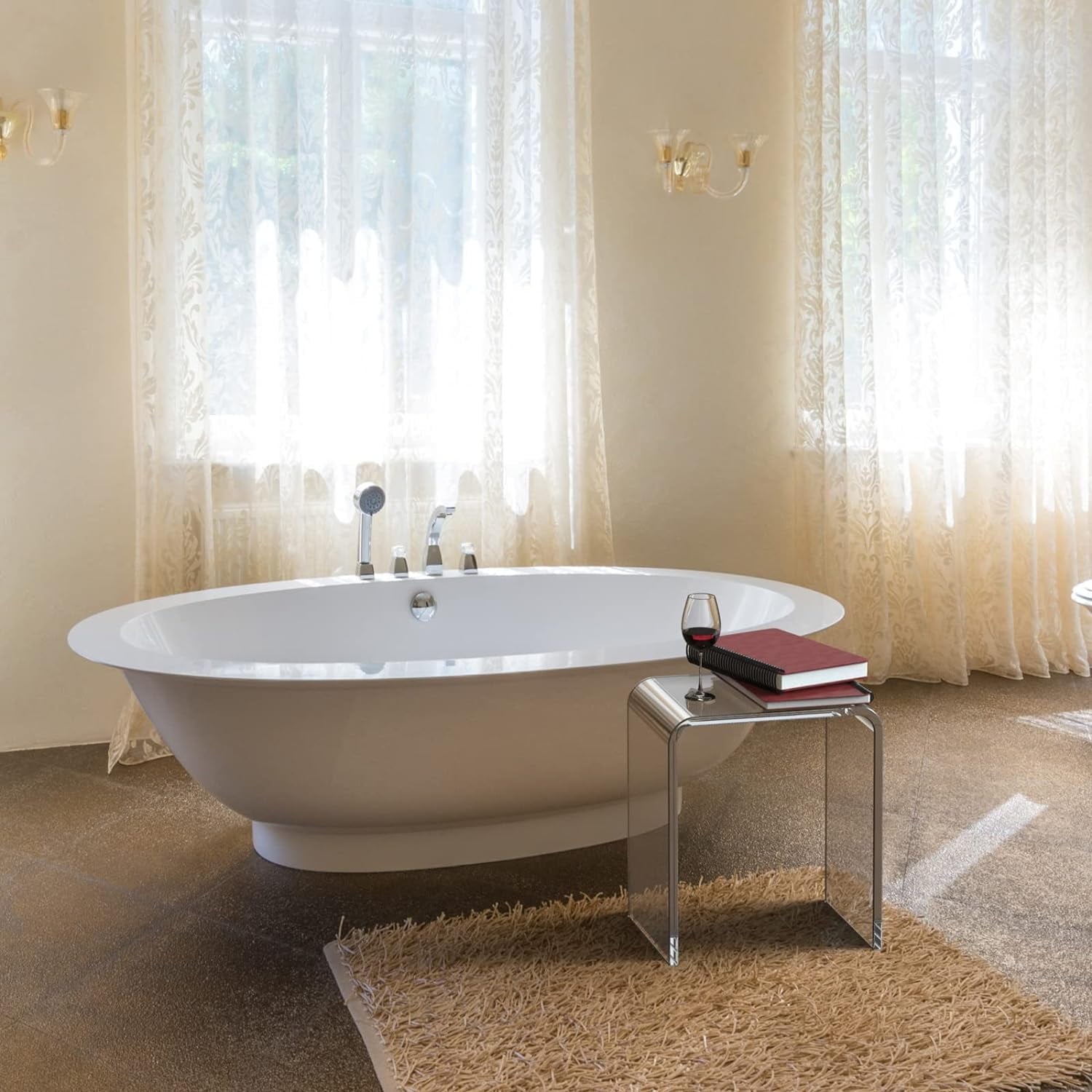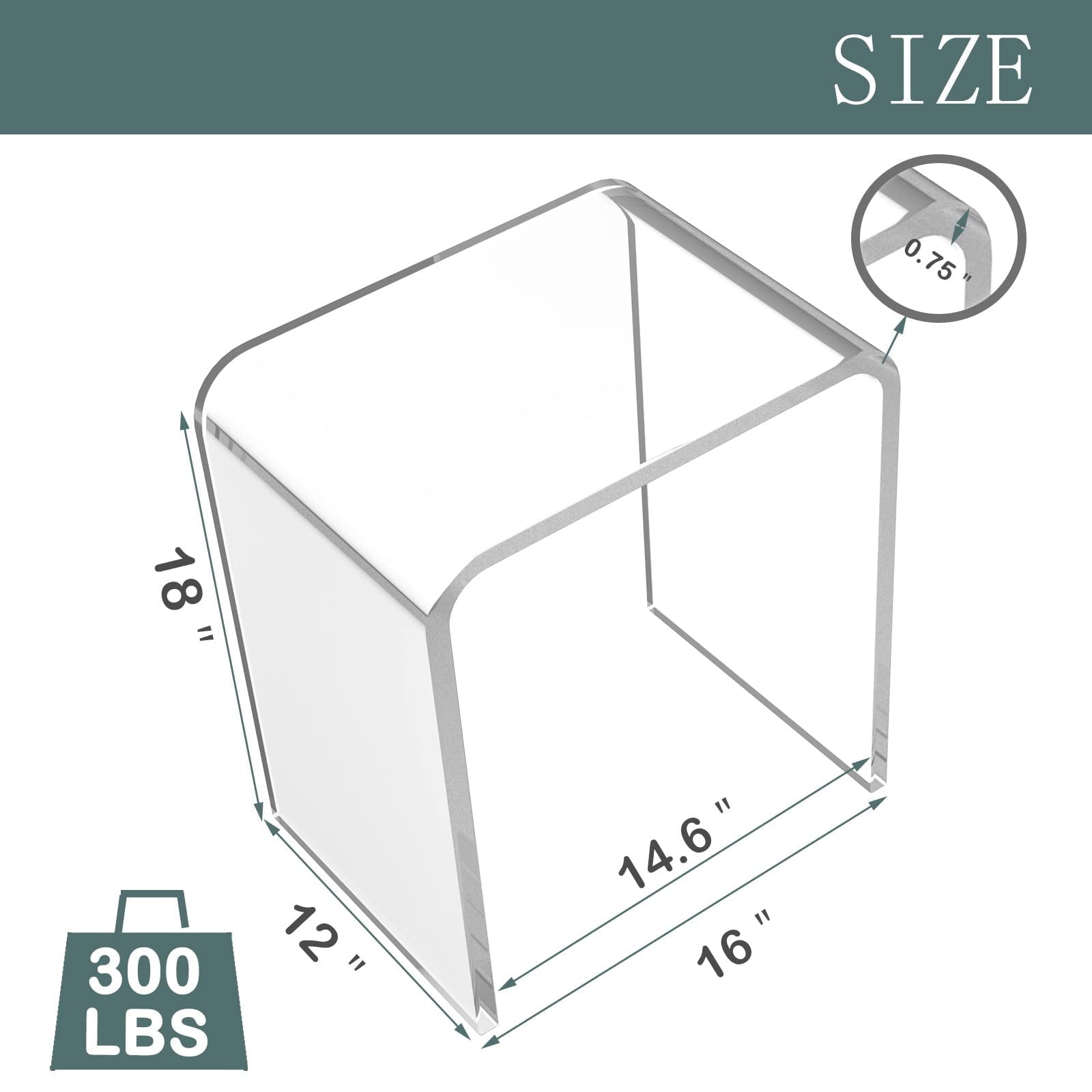 Ageszoe Acrylic End Table, Modern Bathroom Chair 3/4" Thick with Round Edges, 16"L x 12"W x 18"H, Transparent