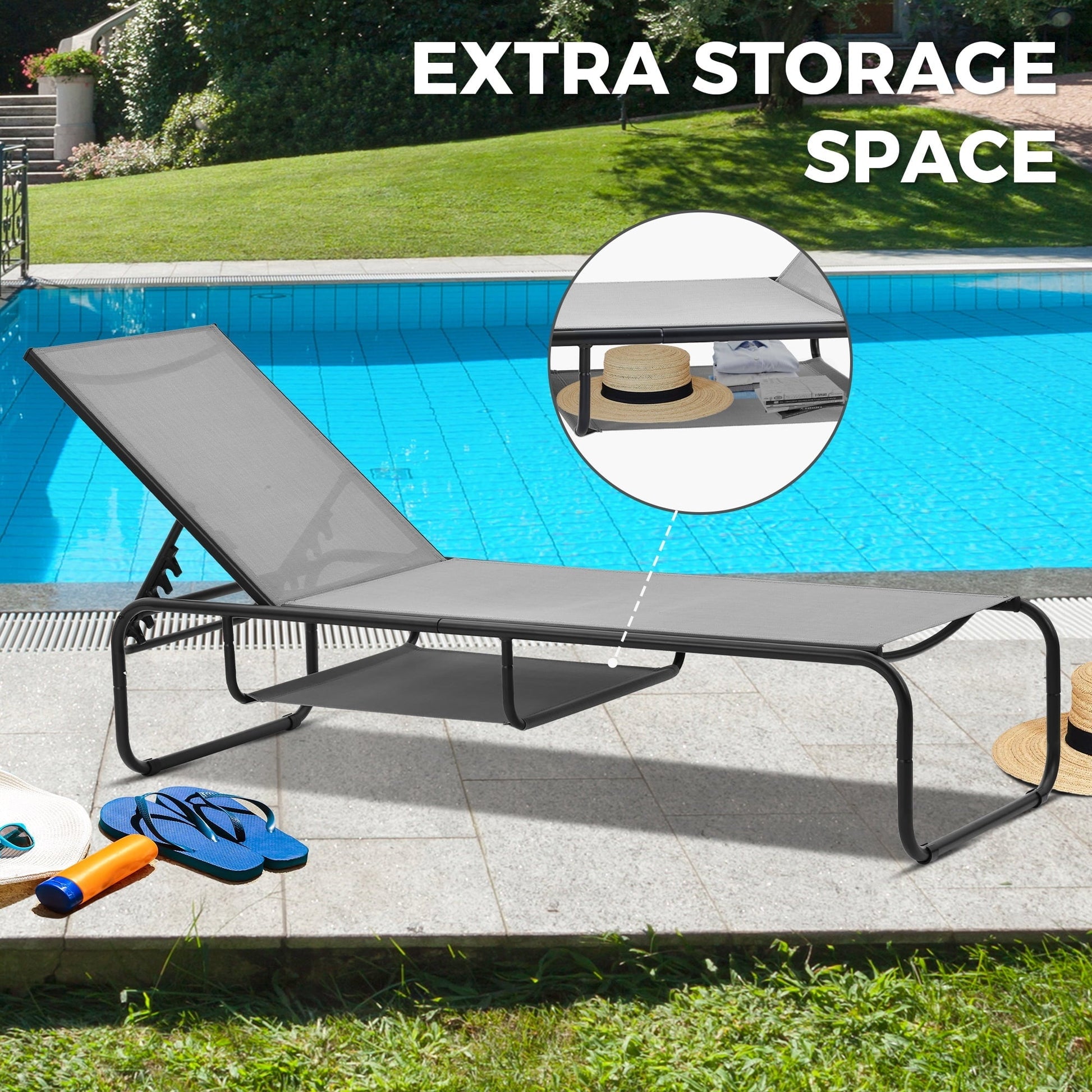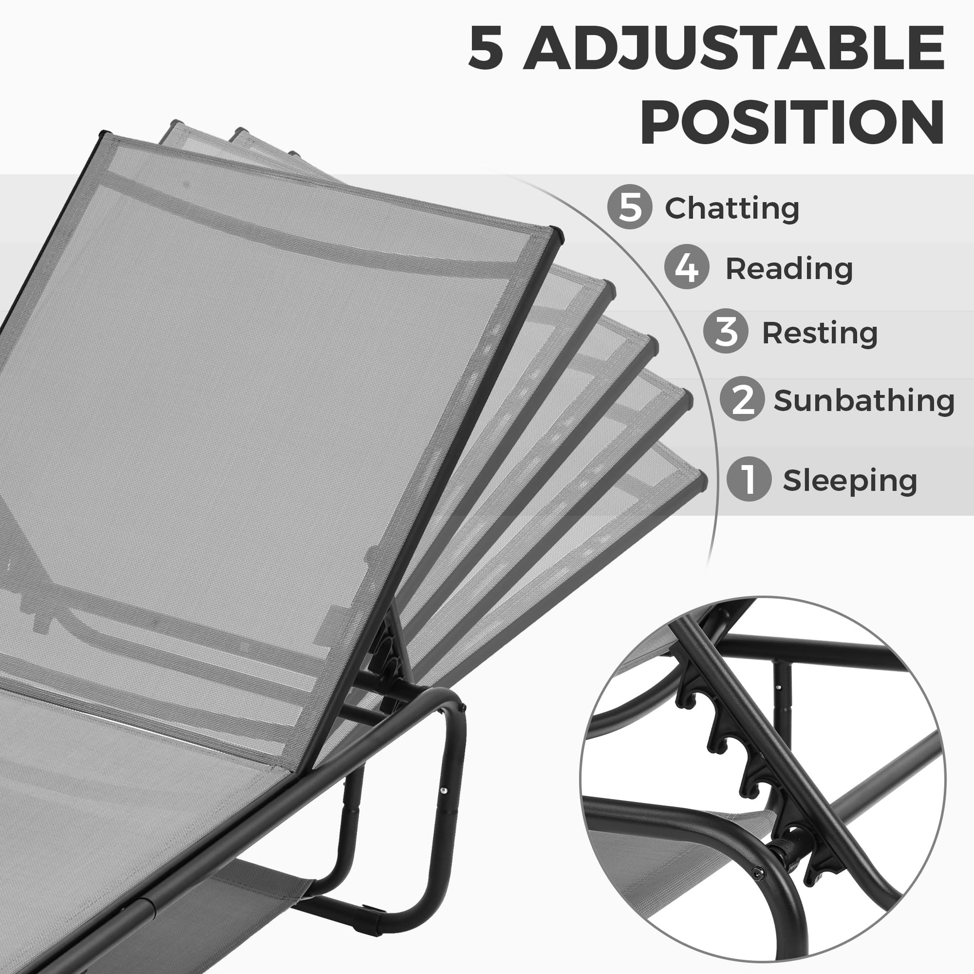 Ainfox Patio Lounge Chair Set of 2, Recliner with Adjustable 5-Position and Storage, Outdoor Chaise Lounge for Beach,Poolside,Grey/Grey