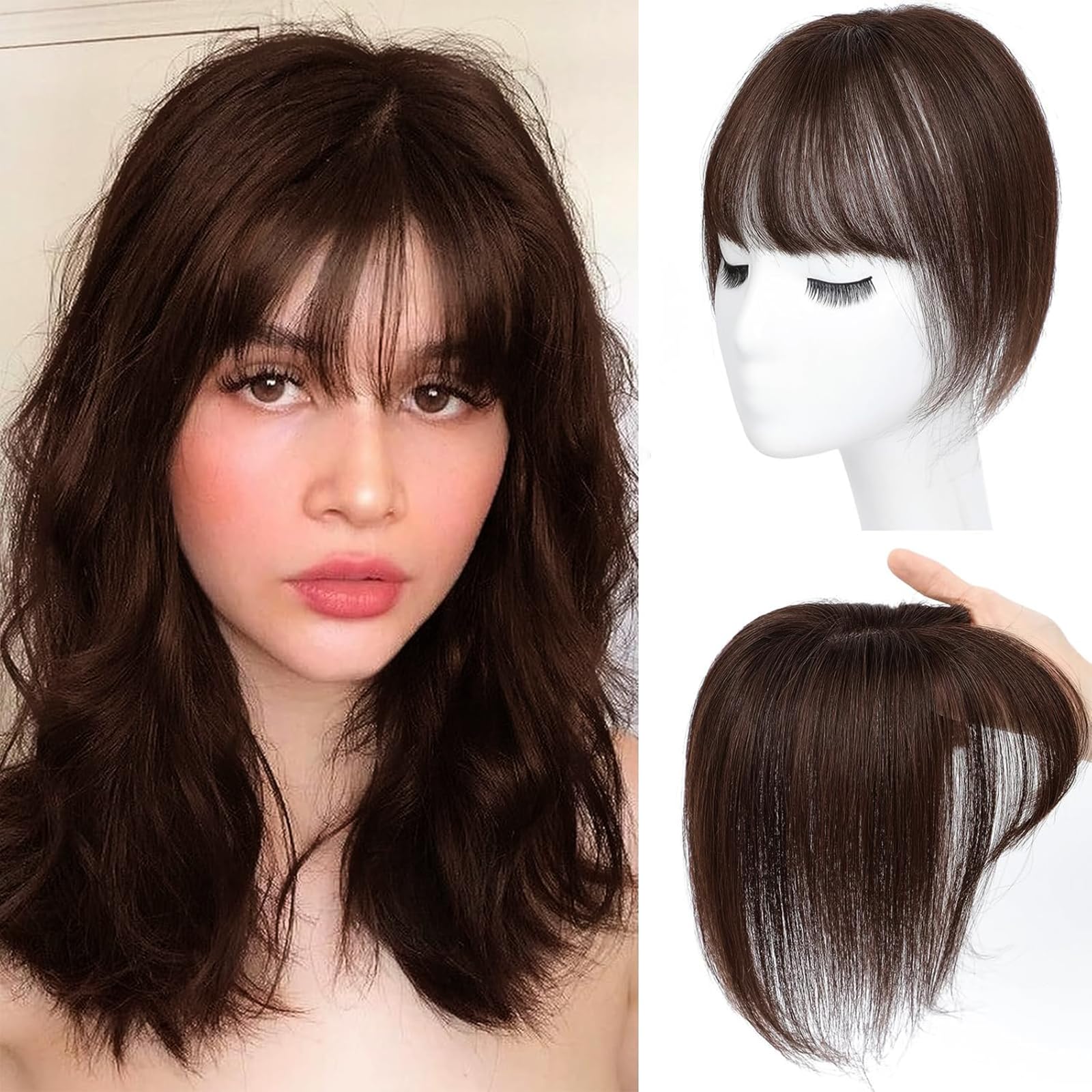 Amchoice Hair Toppers for Women Real Human Hair, Clip 360° 3D Cover, Human Toppers for Women Daily (Mocha Brown, 3D Wispy Bangs (5 * 9))