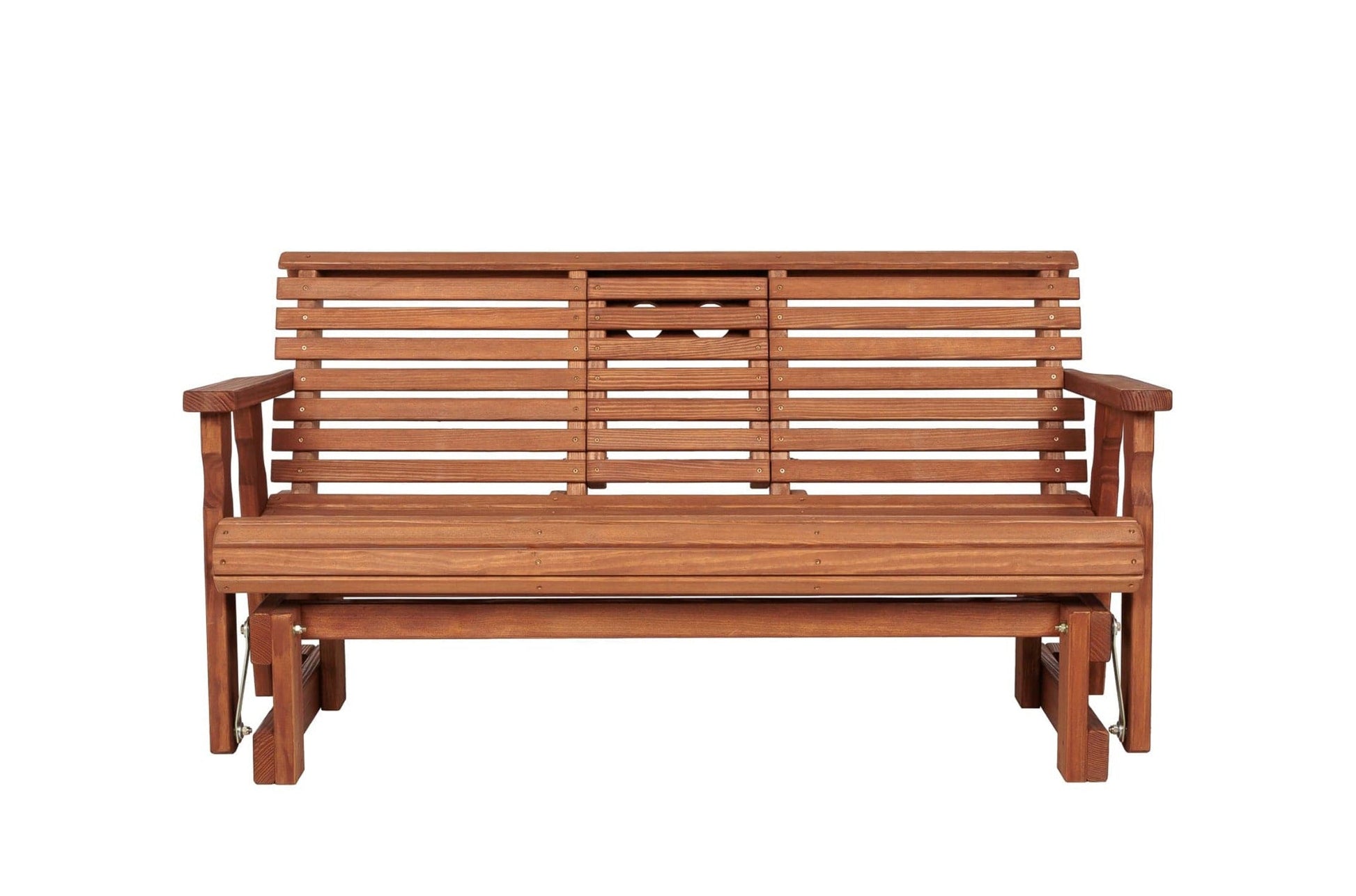 The Amish Casual Heavy Duty Rollback Console Glider by Amish Casual features a flip-down console in the middle that can hold up to two beverages. The center console can be flipped up when not in use to allow for more seating space. The Rollback Console Glider is made in the USA by skilled Amish Craftsmen.ย