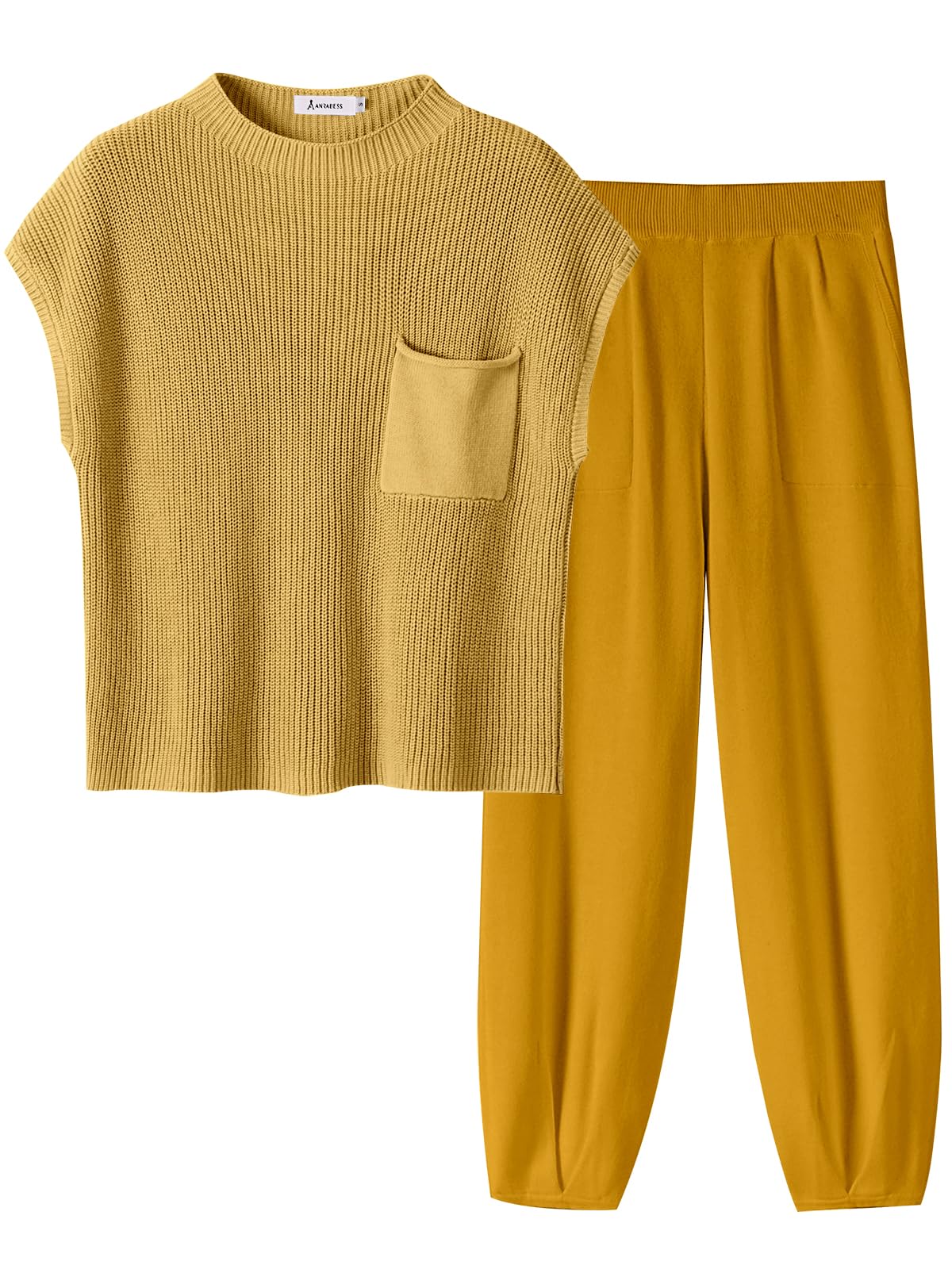 ANRABESS Women's Two Piece Outfits Knit Sweater Pullover Crop Top & Pants Lounge Matching Tracksuit Sweatsuit Sets 2024 Trendy Loungewear Clothes Yellow Small