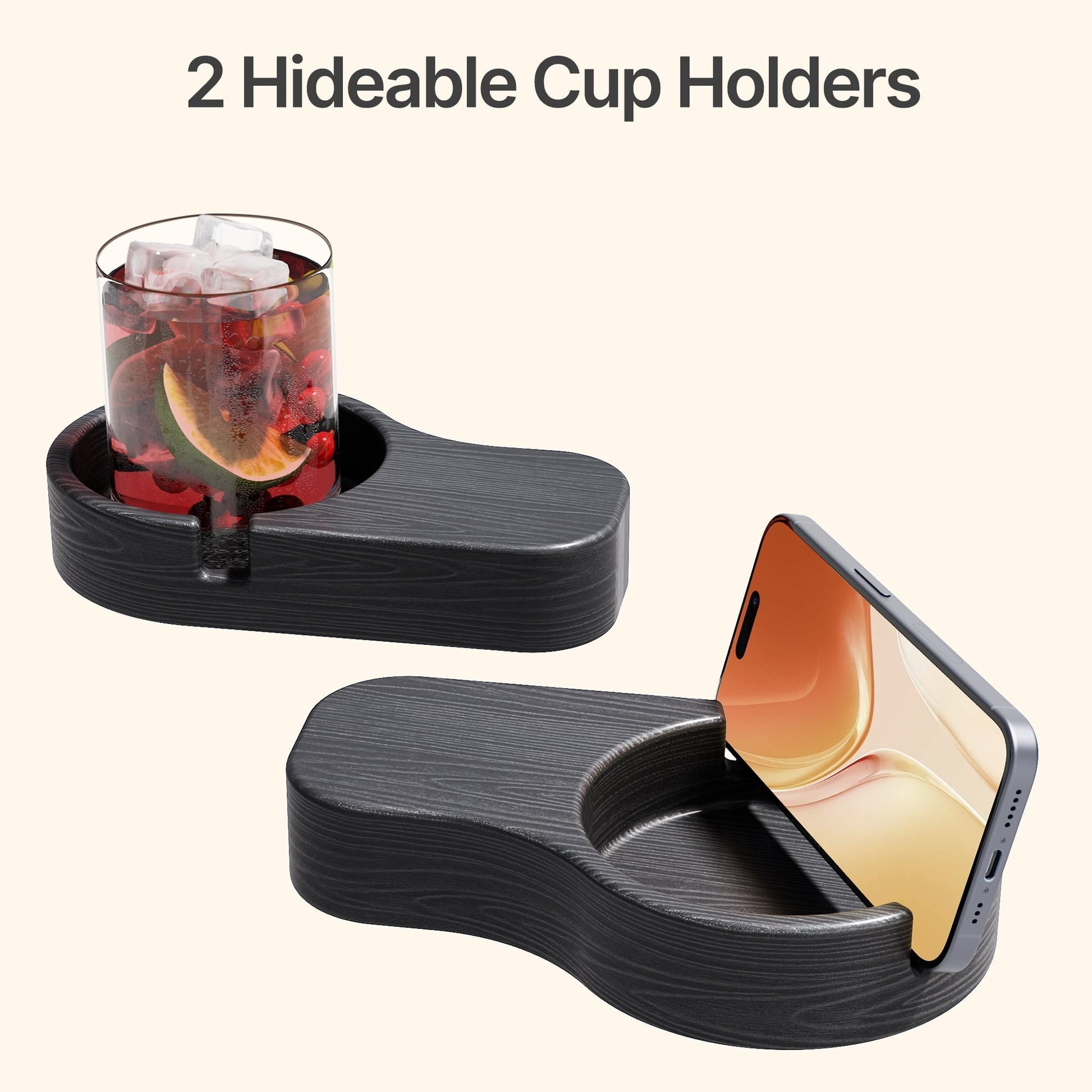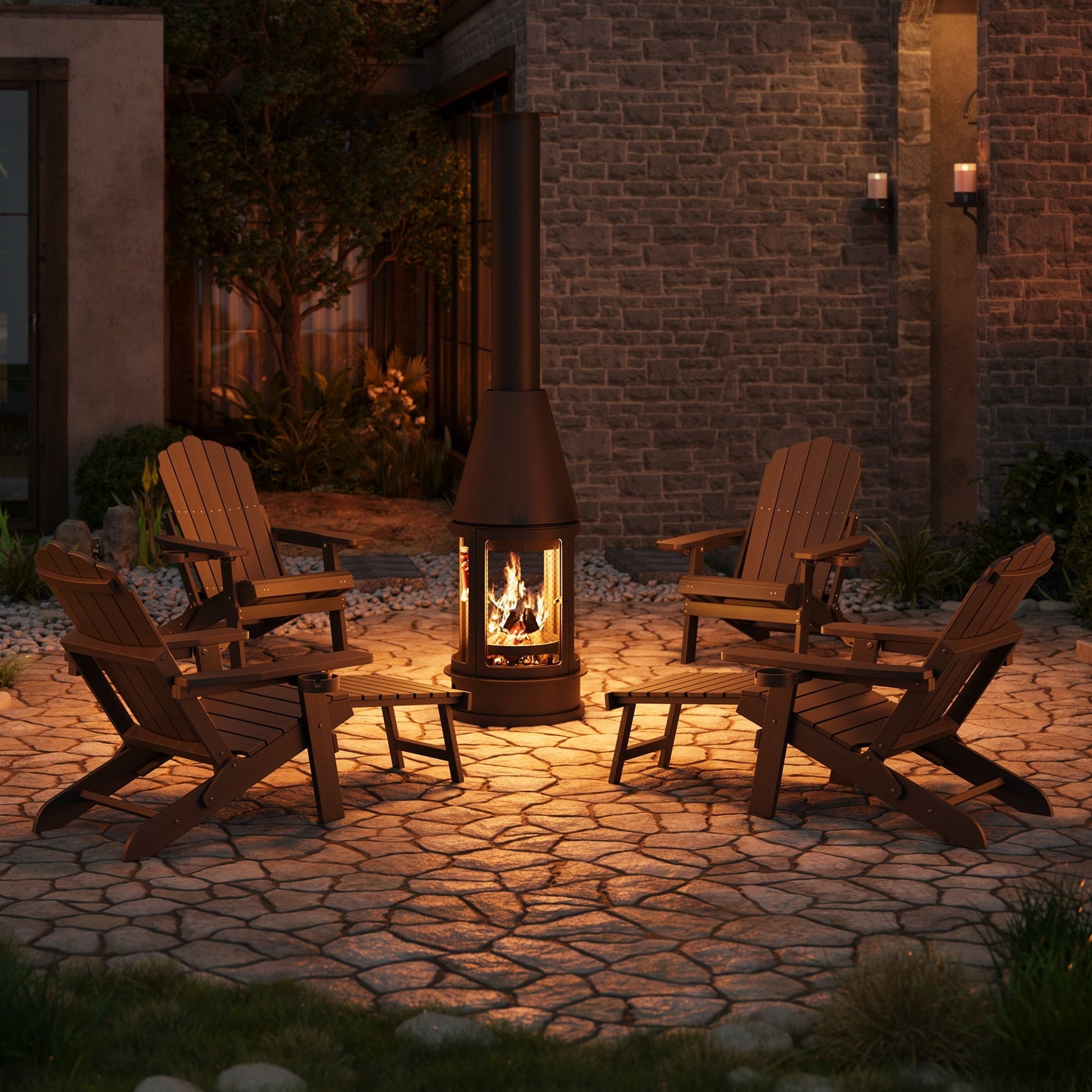 Asofer durable Folding Adirondack Chair and Retractable Ottoman, Wooden Textured with two Cup Holders,HDPE Poolside Backyard Lawn Coffee, Black