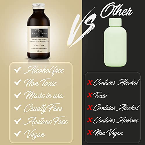 Karma Organic Natural Nail Polish Remover Unscented with Vitamin E Oil - Non Toxic, Vegan, Cruelty Free, Acetone free – Nails Strengthener for Fingernails – 4 fl. Oz.