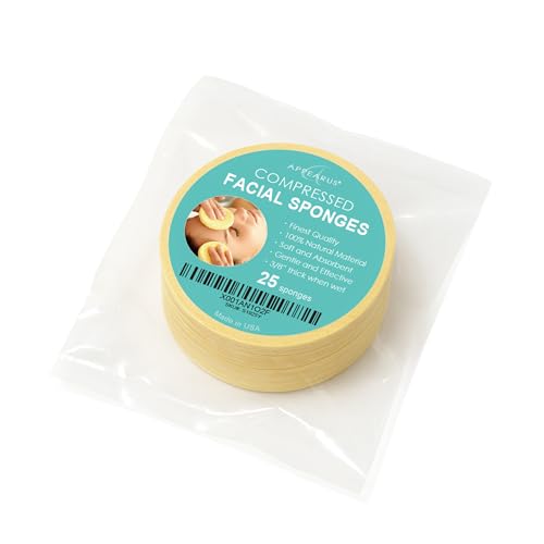 Appearus Natural Cellulose Facial Sponges – 25 Pack (Compressed) – Professional Spa Facial Sponge Pads for Cleansing, Exfoliating, Makeup Removal – Natural Yellow – Gentle on Sensitive Skin