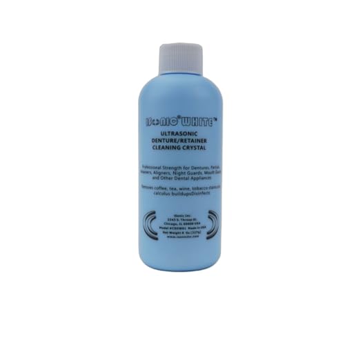 iSonic White CSDW01 Denture/Retainer Cleaning Crystal to Remove Stains, Buildups for all dental/sleep apnea/clear appliances, 8OZ bottle