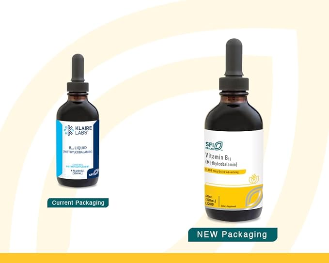 Klaire Labs Vitamin B12 Liquid Drops 5mg - Mood & Cognitive Support from 5000mcg Active Coenzyme Methylcobalamin - Hypoallergenic (120 Servings, 4 Fluid Ounces)