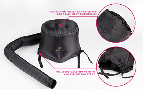 - Universal Fit for All Handheld Dryers - Designed with a 4.5-inch stretchable hose collar and secure velcro strap, this bonnet fits all standard blow dryers and prevents heat from escaping during use.treatments.