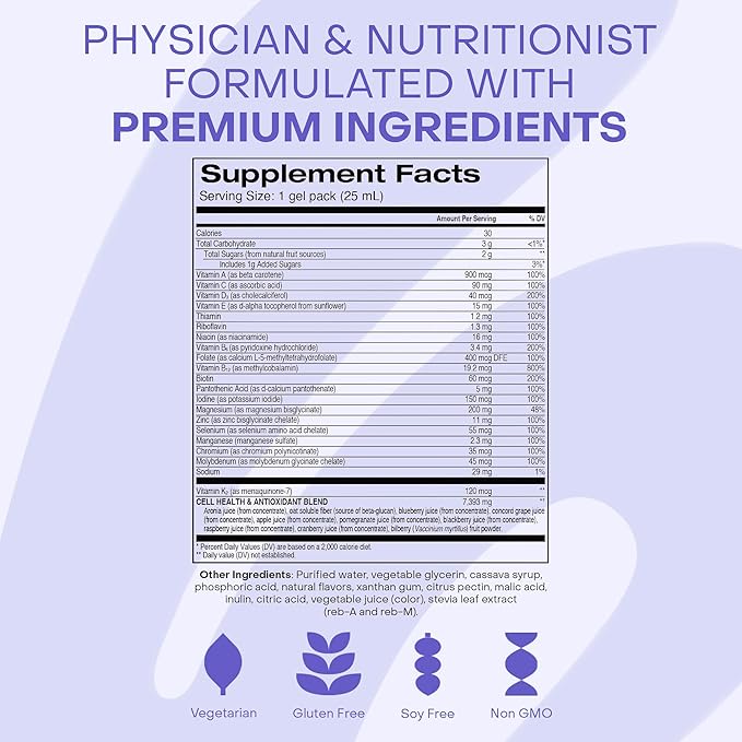 - All-in-One Formula Replaces 14 Pills: The future of vitamins is pill free. This physician and nutritionist formulated gel pack is a complete supplement with zinc, magnesium, antioxidants, and other essential nutrients to support overall vitality.