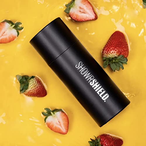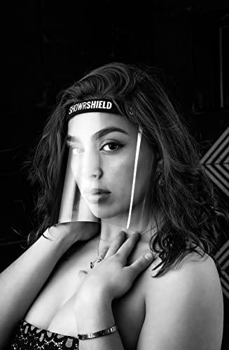 - SHOWRSHIELD was designed to be very lightweight, comfortable, safe & water-resistant while showering. We use a high-grade durable lightweight plastic for the clear facial shield. The plastic shield conforms to your forehead providing a flexible water-deflecting seal. We donโt use a glass shield because it is heavy, inflexible, non-confirming, expensive, & a serious safety hazard if it shatters if dropped in the shower.