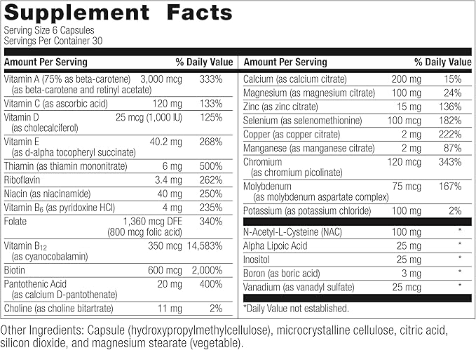 - Small multi-formula capsules help facilitate easy swallowing, Includes a comprehensive level of nutrients, including fat soluble vitamins, B-Complex, calcium citrate, and trace element support