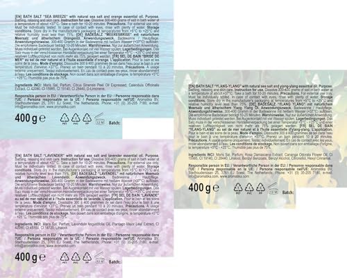 Bath Salts Set 42 Oz - Lavender - Sea Breeze - Ylang-Ylang - 100% Natural Essential Oil - Bathing - Body Care - Beauty - Relaxation - Spa