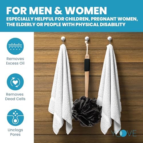 - [Value For Money] - This body cleaning set includes a Loofah bath scrubber for body with long wooden handle, Loofah Pouf and Shower Hook. Our Loofah sponge is for both men and women.