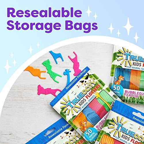 Kids Flossers 4 Pack (200 Total), Kids Floss Picks, Flossers Kids, Floss for Kids, Cute Animal Shapes, Glides Easy Between Teeth, Flosser Helps Prevent Tooth Decay & Gum Disease, Bubble Gum Flavored