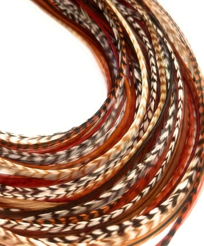 - This set of hair feathers looks perfect on EVERY HAIR COLOR! Set of 20 Loose Feather Hair Extensions in striking black and white stripes and Warm Natural Browns tones that compliment all blondes and brunette shades with a subtle, but noticable style.