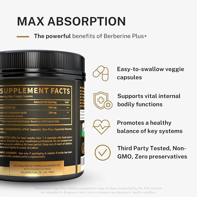- MAX ABSORPTION: Berberine supports AMP-activated protein kinase (Active PK), aiding in restoring energy in your cells. Adding Ceylon Cinnamon creates a harmonious blend improving absorption and potency beyond stand-alone berberine supplements.*