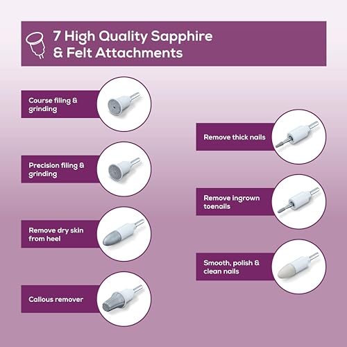 - SALON QUALITY: The MP32 Nail Drill includes 7 high-quality attachments, cord, and storage case – sapphire drill bits and felt buffers for professional manicure or pedicures at home