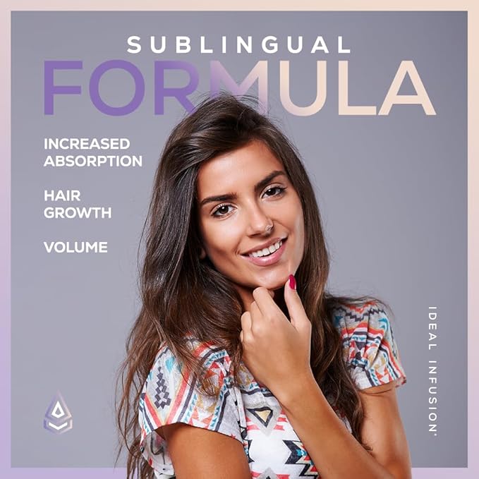 Ideal Infusion B-Bomb Lush Biotin Liquid Spray: Organic Lavender Vanilla - 5000mcg, Hair Growth Vitamin for Thickness and Volume - Skin Health, Stronger Nails, Keto, Vegan