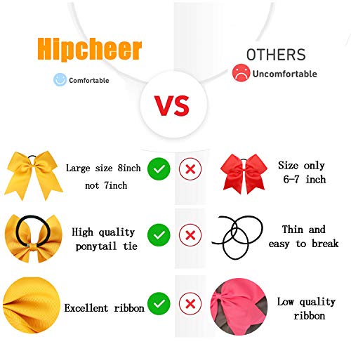 - ★EXCELLENT QUALITY:Comfortable wear feeling. The cheer bows for teen girl easily attaching to a ponytail with a wrapped elastic hair tie, she can jump and cheer to her heart's content without fear of losing her bow.