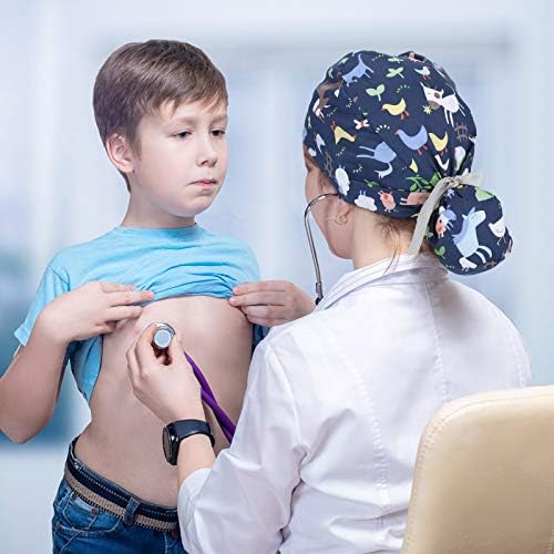 Honoson 6 Pcs Scrub Caps Women Nursing Hats with Buttons Adjustable Bouffant Nurse Hats Ponytail Holder Bouffant Turban
