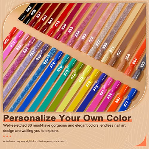 - Get a brilliant shiny nail finish with Lavender Violets dip powder nail kit, it includes 36 jar of glitter and solid rainbow colors acrylic dipping powder (0.34oz/each jar), perfect for all seasons dip manicure looks and pastel nail colors. 【Reminder】The Dip Powder Gel Liquid Set is Not included.