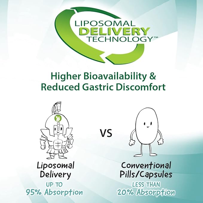 - MAXIMUN ABSORBTION WITH LIPOSOMAL TECHNOLOGY: Our liposomal delivery system ensures up to 90% nutrient bioavailability - significantly higher than standard pills-making each dose up to 4.5x more effective. Get more from your supplements with every serving.