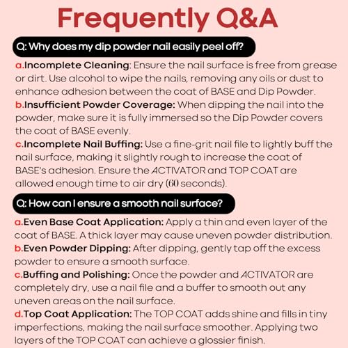 - đŁăPerfect ApplicationăCrafted in 4 popular fashion colors and a variety of color combinations, this premium nail dip is perfect for wedding activities, photos, evening parties, daytime wear, and professional events. With flawless coverage, your nails will exude a shiny and lightweight allure, enhancing your natural beauty