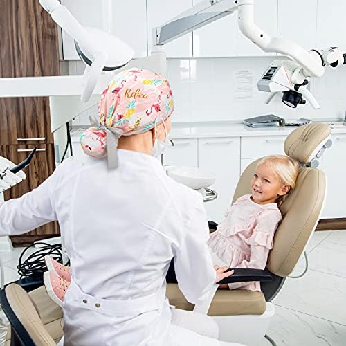 8 Pieces Scrub Caps with Buttons Bouffant Hats with Sweatband Adjustable Ponytail Holder for Women