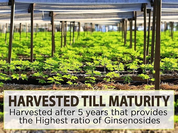 - HARVESTED TILL MATURITY: The age of Ginseng plays an ideal role in its effectiveness for the good possible results. Our Ginseng roots may grown for 5 years before being harvested which gives us the ideal quality