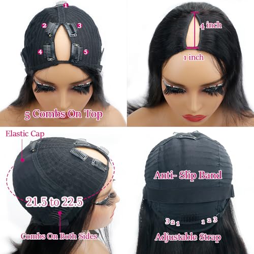 22Inch V Part Wigs Human Hair Straight Brazilian Human Hair Wigs for Black Women Upgrade U Part Wigs No Sew in NO Glue Half Wigs Human Hair 180% Density Natural Color