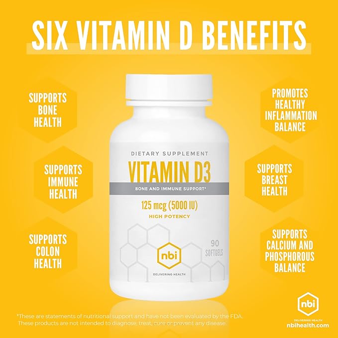 - POWERFUL FORMULA: Provides 125 mcg (5000 IU) premium vitamin D3 to support healthy vitamin D levels.