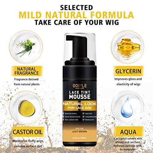 - 【Premium Lace Mousse】 Tint Ideal for women using lace wigs, synthetic wigs, braiding wigs, and other lace wigs types. This tinted lace Mousse helps tint your lace wigs that gives a natural finish that matches with your skin so that you always look your best and feel beautiful inside and out.
