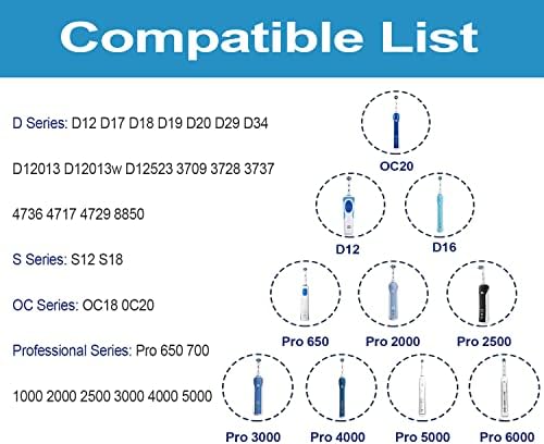 - 【Wide Compatibility】Commonly used in Braun Oral-B electric toothbrush models: D12 S12 S18 D10 D16 D17 D18 D19 D20 D29 D34 D36 / OC18 OC20 / D12013 D12013w D12523 series / Professional 500 600 1000 2000 2500 3000 4000 5000 7000 7500 3709 3728 3737 3756 4736 4717 4729 4733 6500 8000 8850 8900 9000 9000s Genius 6000 8000 et. Suitable for all Oral-B Round head electric toothbrush.