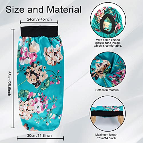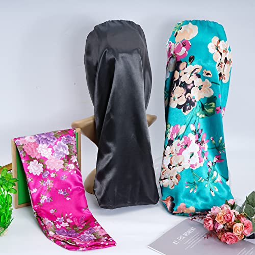 - Package Contains: The long satin bonnet Set is 3-pack (1 Black & 1 Green Floral 1 Red Floral Satin Silk Nightcap) and measures 25.6' long. The braid bonnet fits all head shapes and are available in sufficient quantities to be worn and replaced daily.