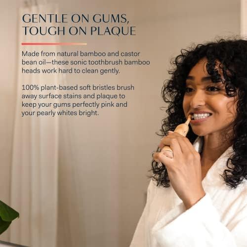 Better & Better Bamboo Sonic Toothbrush Replacement Heads | Replaceable Bamboo Sonic Brush Heads w/Soft, Plant-Based Bristles for High-Polish, Gentle Clean | Whitens Surface Stains & Removes Plaque
